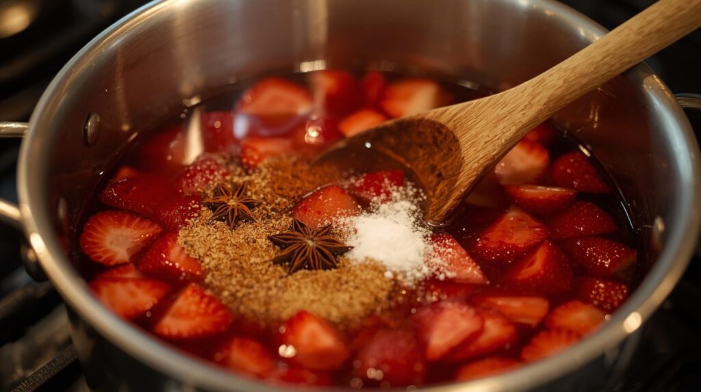 Se o componente que se deseja acrescentar para dar sabor for uma especiaria, planta ou casca, o método de preparo deve ser por infusão. Nesse caso, coloque o xarope simples em uma panela, mergulhe o componente dentro e coloque no fogo para aquecer por aproximadamente 15 minutos. Deslique o fogo e espere esfriar. Então, coe e transfira para uma garrafa.